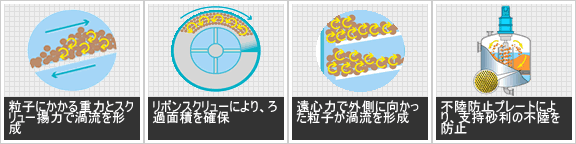 凝着した濁質をシフォン洗浄によって完全に剥離し、その濁質のすすぎのみを目的として逆流洗浄を行う為、逆流洗浄水量を大幅に減らすことができます。